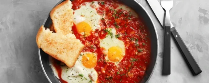 Foto: fra offentlige kilder Denne retten ligner noe på shakshuka fra Midtøsten Å kombinere egg med tomatsaus er populært i mange land. En slik rett er Eggs in.